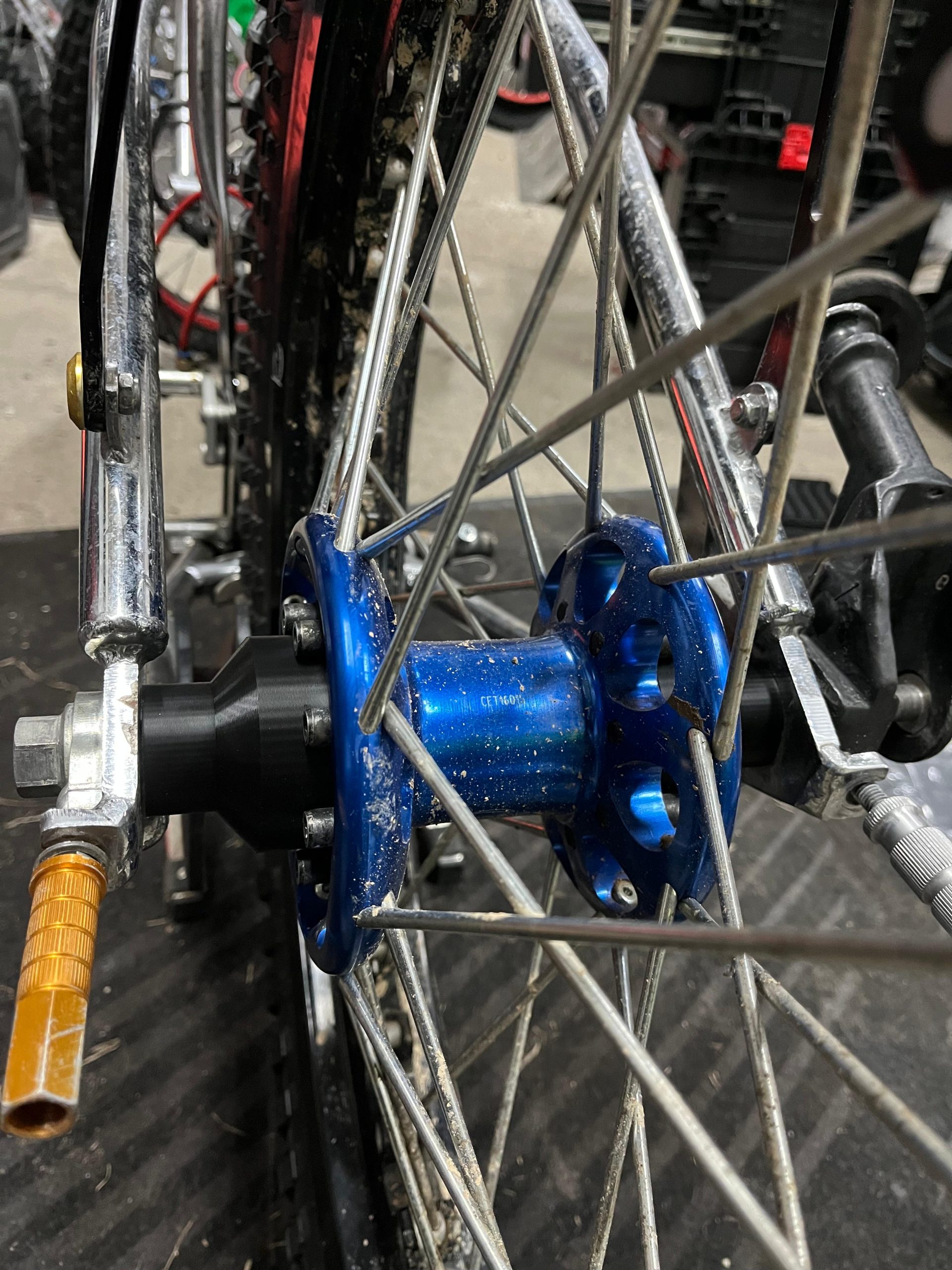 Tulejki umożliwiające mycie kół Kineo bezpośrednio na motocyklu.
